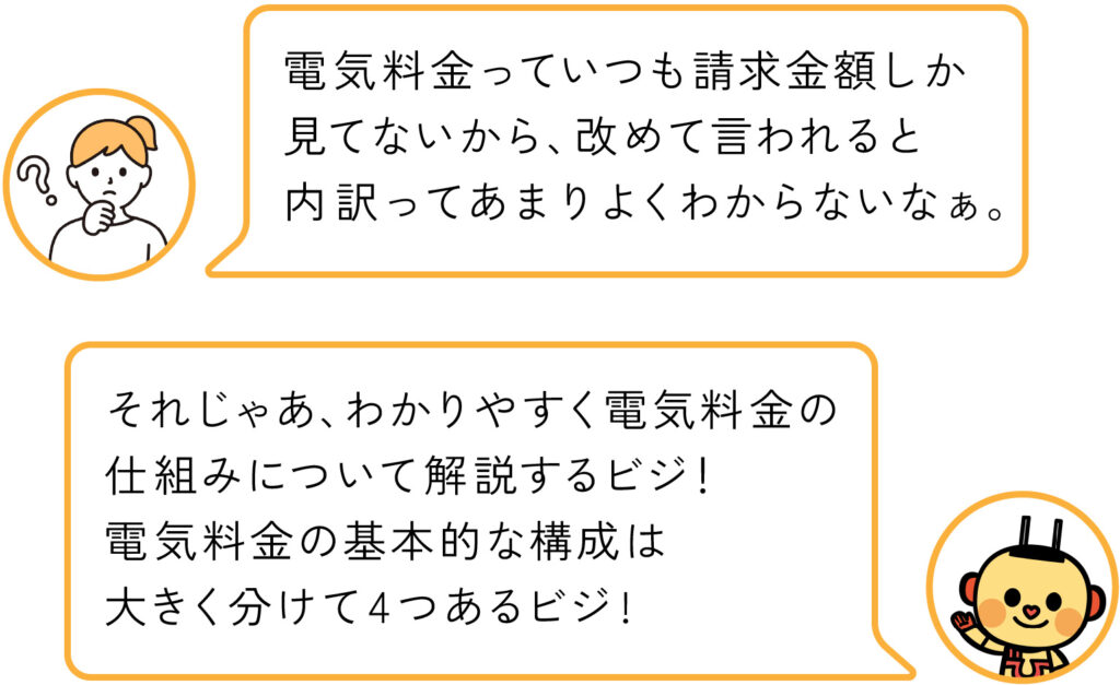 今回は、毎月何気なく見ている電気料金の明細書。電気使用量以外にも発生している料金があることはご存じでしょうか。使った分の電気代以外にも、なぜプラスで料金が発生しているのか疑問に思う方も多いと思います。そこで、電気料金の仕組みについて学んでいきましょう!今回は基本編ということで電気料金の項目について詳しくご説明します。