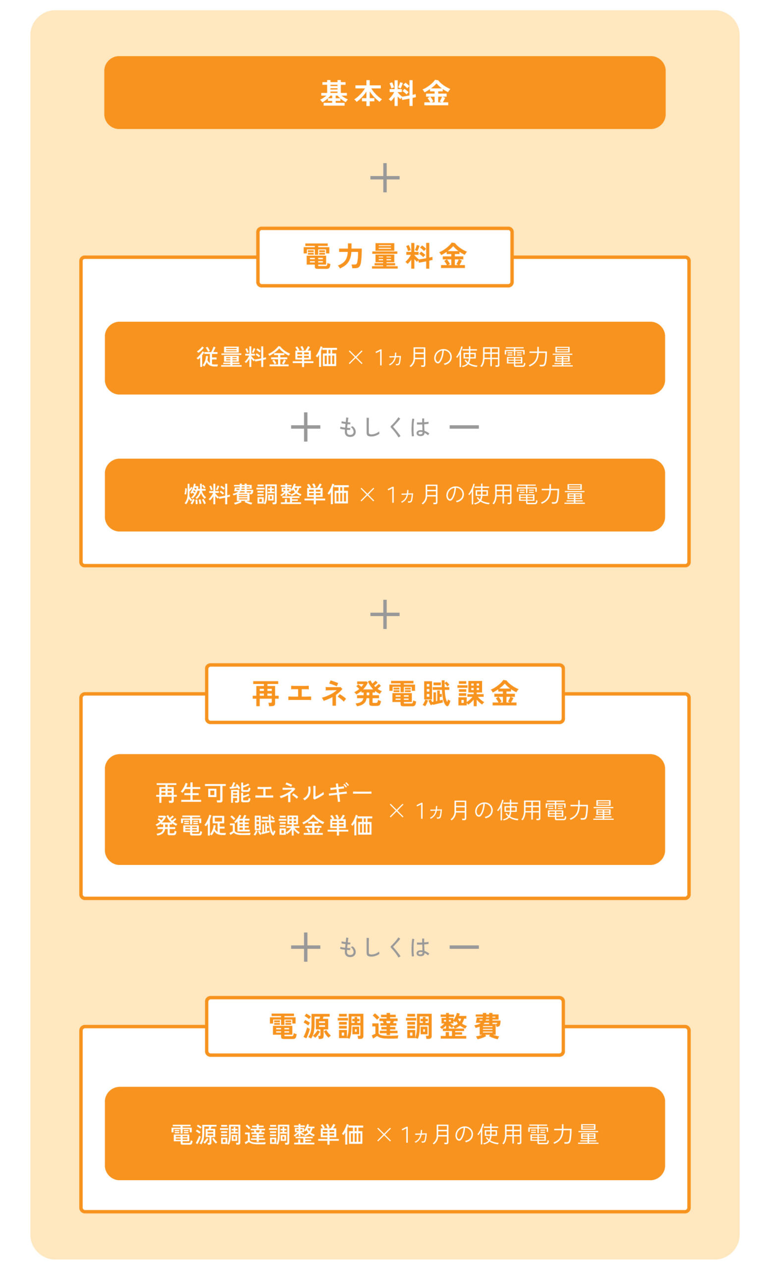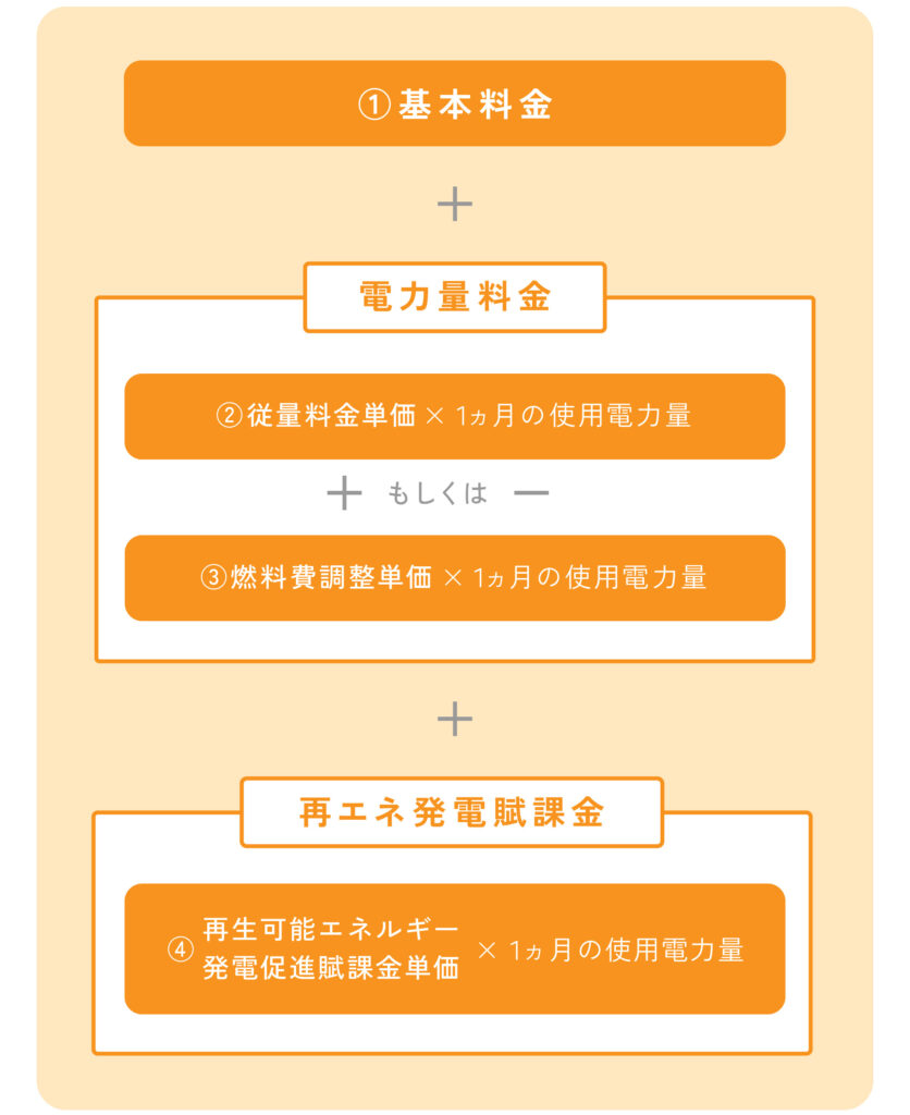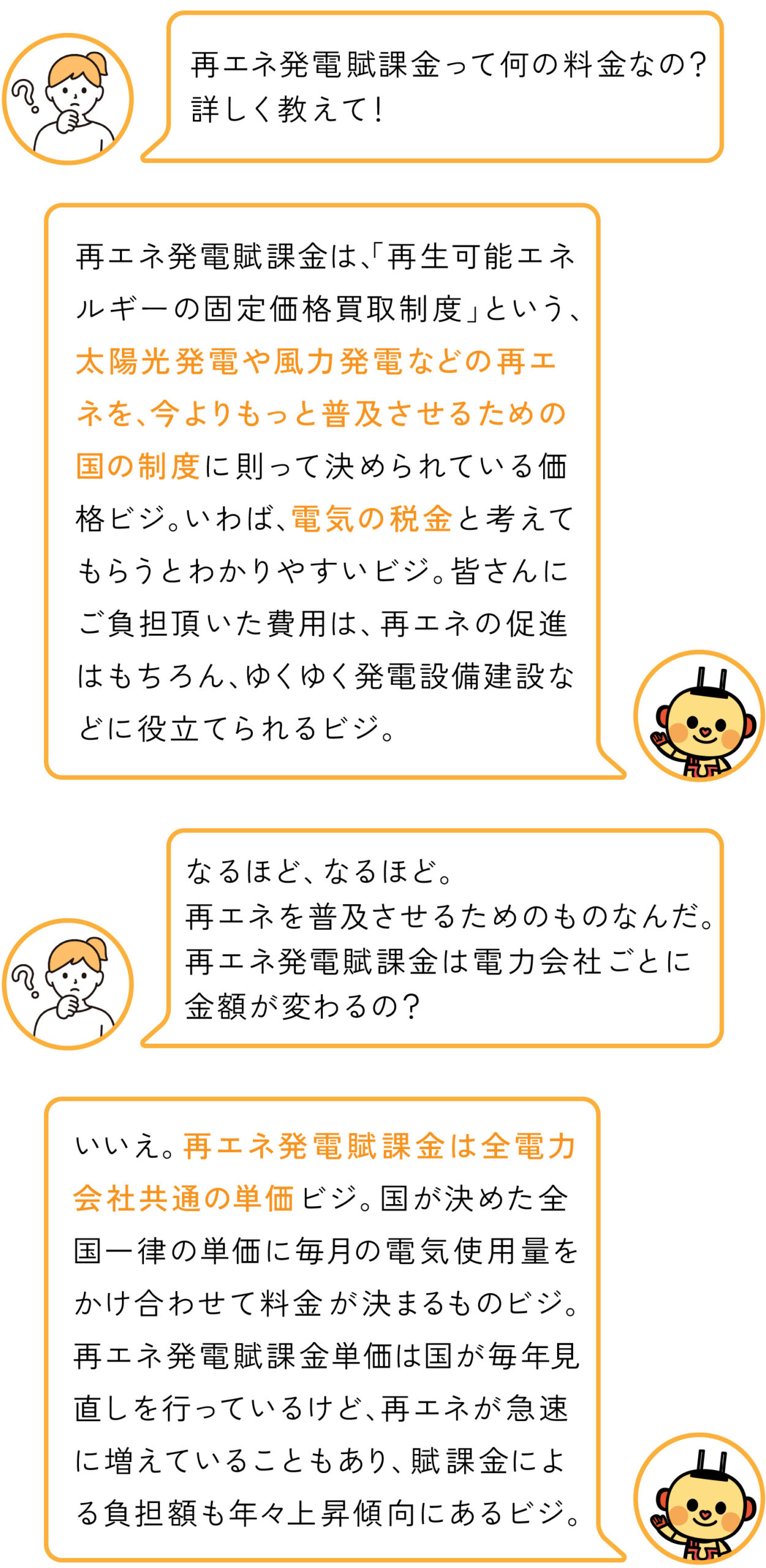 太陽光発電や風力発電などの再エネを普及させるため、国の制度に基づいて全国一律の単価に毎月の電気使用量をかけ合わせて計算しています。