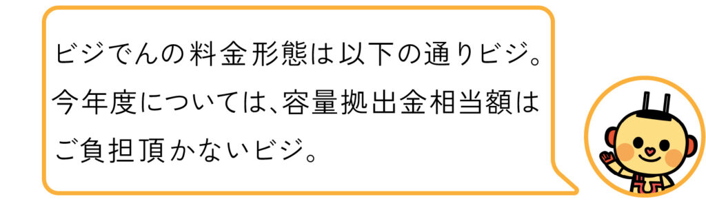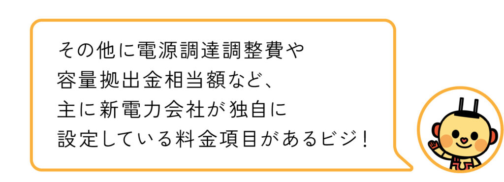 当社以外の独自の料金項目となります。容量拠出金は、将来の必要な供給力を確保する事を目的とし、今年4月から全小売電気事業者が費用の負担を開始するものになりますが、お客さまに負担をお願いしている電力会社もあります。