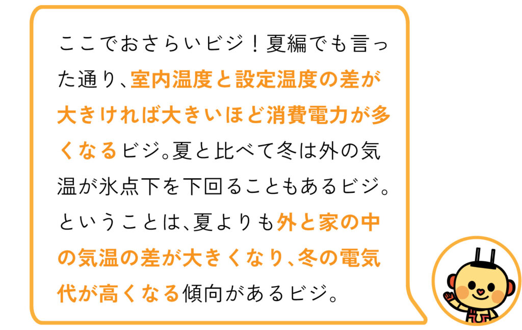 - 冬の電気代は日照時間の短さと暖房器具の消費電力の影響で高い