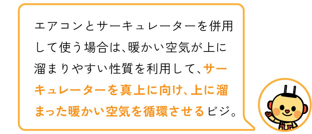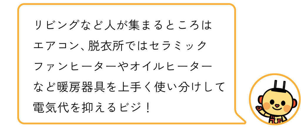 - エアコンとこたつやサーキュレータ―などを併用することで設定温度を低く設定しても快適に過ごすことができる