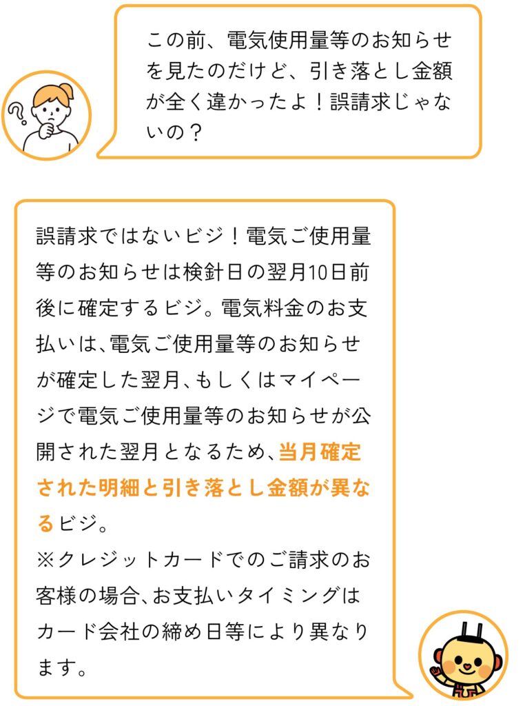 引き落とし金額と届いた電気ご使用量等のお知らせの金額が相違している