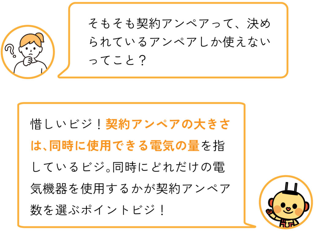 - 契約アンペアの大きさは、同時に使用できる電気の量を指している