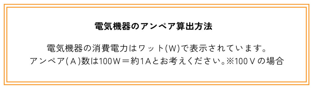 もう一つの方法として、同時に使用する電気機器の消費電力を試算して契約アンペア数を決める方法があります。実際にご使用になられている電気機器の消費電力で試算する方法が確実ですが、電気機器のアンペアの目安を参考に試算することも可能です。