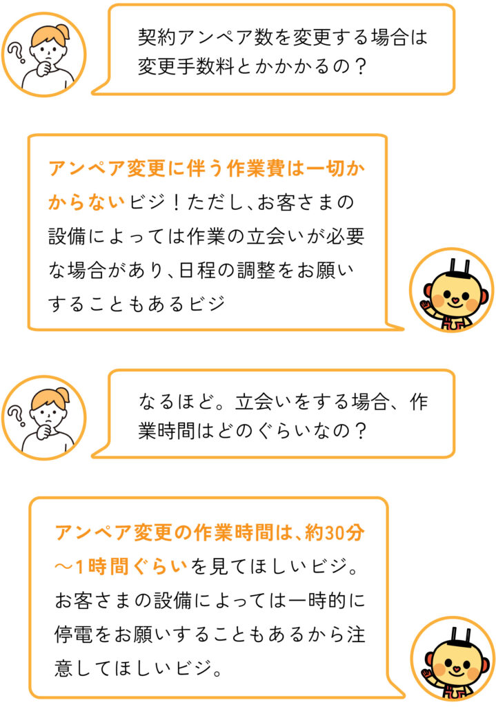- ビジでんでは、お電話で契約アンペア数の変更を承っている